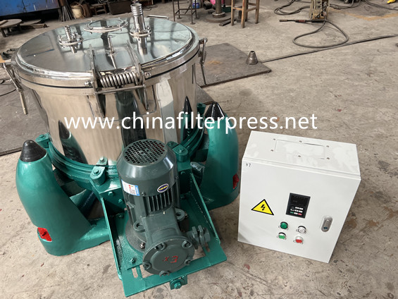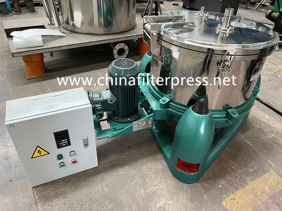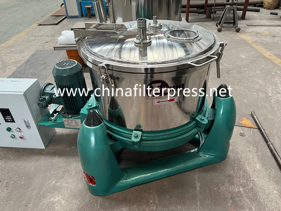 Двигатель вращает барабан с высокой скоростью. Материал подается в барабан через верхнюю загрузочную трубу и под действием центробежной силы движется к стенке барабана. Жидкость выводится через фильтровальную ткань и фильтрующие отверстия в стенке барабана, а твердые частицы остаются в барабане. После выключения машины откройте крышку, ослабьте фиксатор пластины, удерживающей жидкость, и с помощью подъемного устройства поднимите пластину, удерживающую жидкость, и фильтровальный мешок с осадком в зону выгрузки. Отпустите специальный подъемный захват, чтобы открыть отверстие на одном конце фильтровального мешка, и осадок автоматически выпадет.