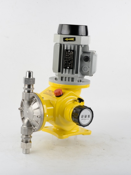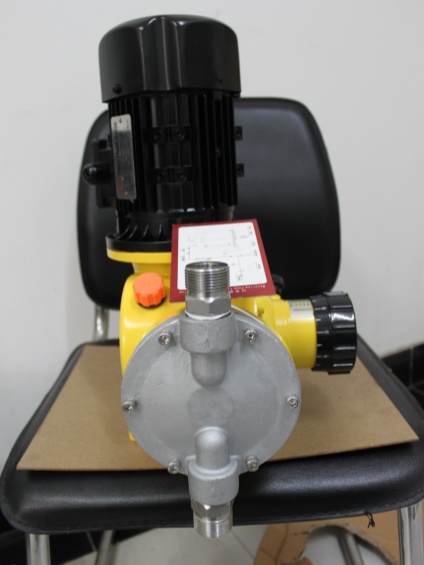 Двигатель через муфту приводит в движение червяк, который через червячный редуктор приводит во вращение главный вал и эксцентрик. Эксцентрик затем приводит в движение толкатель, совершающий возвратно-поступательное движение внутри направляющего цилиндра. Обратный клапан совместно с диафрагмой постепенно создает вакуум в камере насоса, что приводит к открытию всасывающего клапана и всасыванию жидкости. Когда диафрагма движется к передней мертвой точке, всасывающий клапан закрывается, а нагнетательный клапан открывается, позволяя жидкости выходить под действием диафрагмы. Возвратно-поступательное движение насоса, настроенное на определенный ход поршня, обеспечивает непрерывный, под давлением и в необходимом количестве выпуск жидкости.