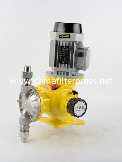 Двигатель через муфту приводит в движение червяк, который через червячный редуктор приводит во вращение главный вал и эксцентрик. Эксцентрик затем приводит в движение толкатель, совершающий возвратно-поступательное движение внутри направляющего цилиндра. Обратный клапан совместно с диафрагмой постепенно создает вакуум в камере насоса, что приводит к открытию всасывающего клапана и всасыванию жидкости. Когда диафрагма движется к передней мертвой точке, всасывающий клапан закрывается, а нагнетательный клапан открывается, позволяя жидкости выходить под действием диафрагмы. Возвратно-поступательное движение насоса, настроенное на определенный ход поршня, обеспечивает непрерывный, под давлением и в необходимом количестве выпуск жидкости.